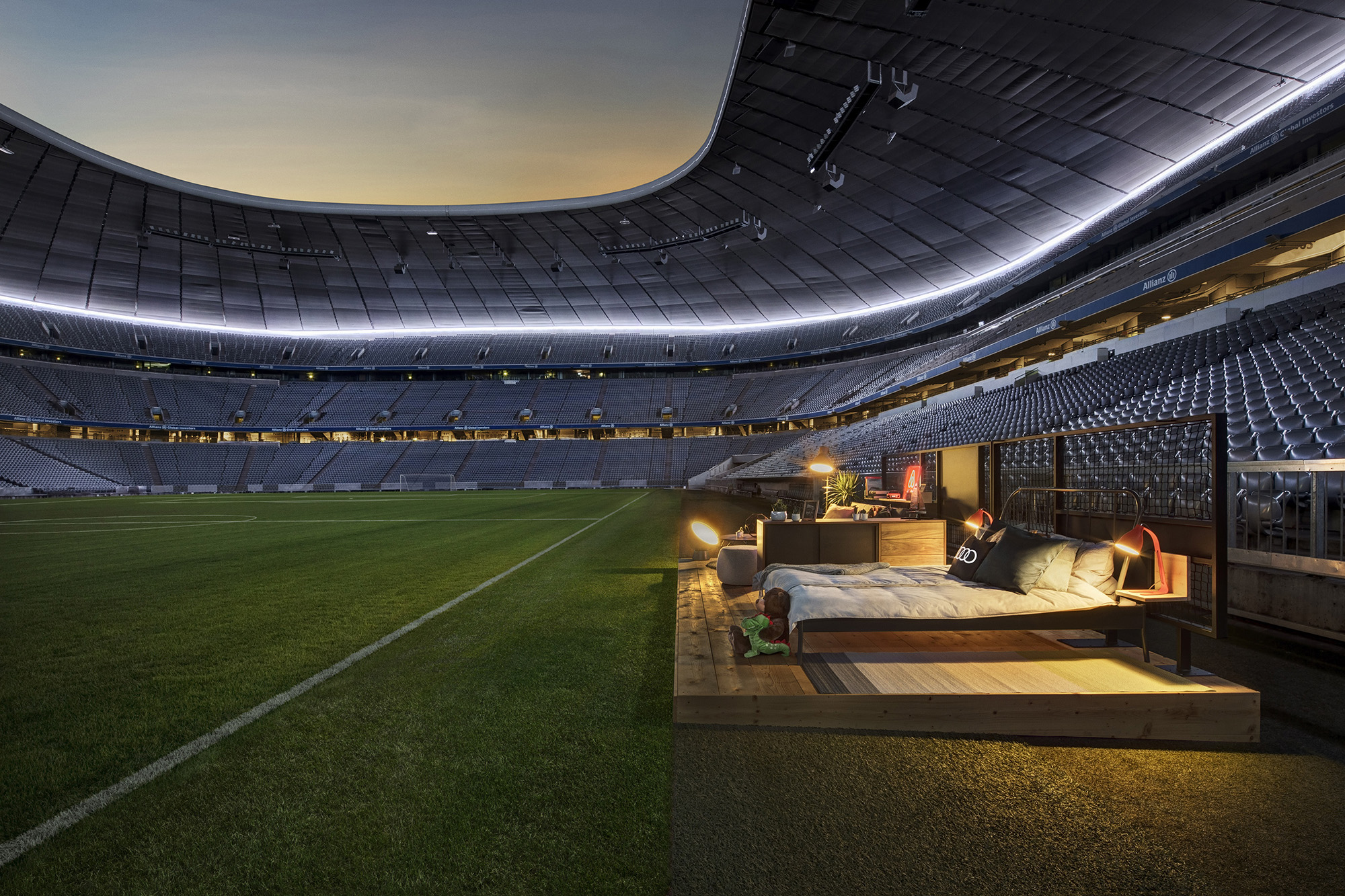 Audi and Airbnb are transforming the Allianz Arena in Munich into a spectacular pitch-side home during the 2017 Audi Cup, the fifth Audi Cup, held August 1-2. One football obsessed family will have the chance to score the most comfortable seats a football fan could dream of. Breaking the barrier between sport and fan, the family-friendly accommodation for the tournament will include a bedroom and living space and will be built just meters from the sideline.
