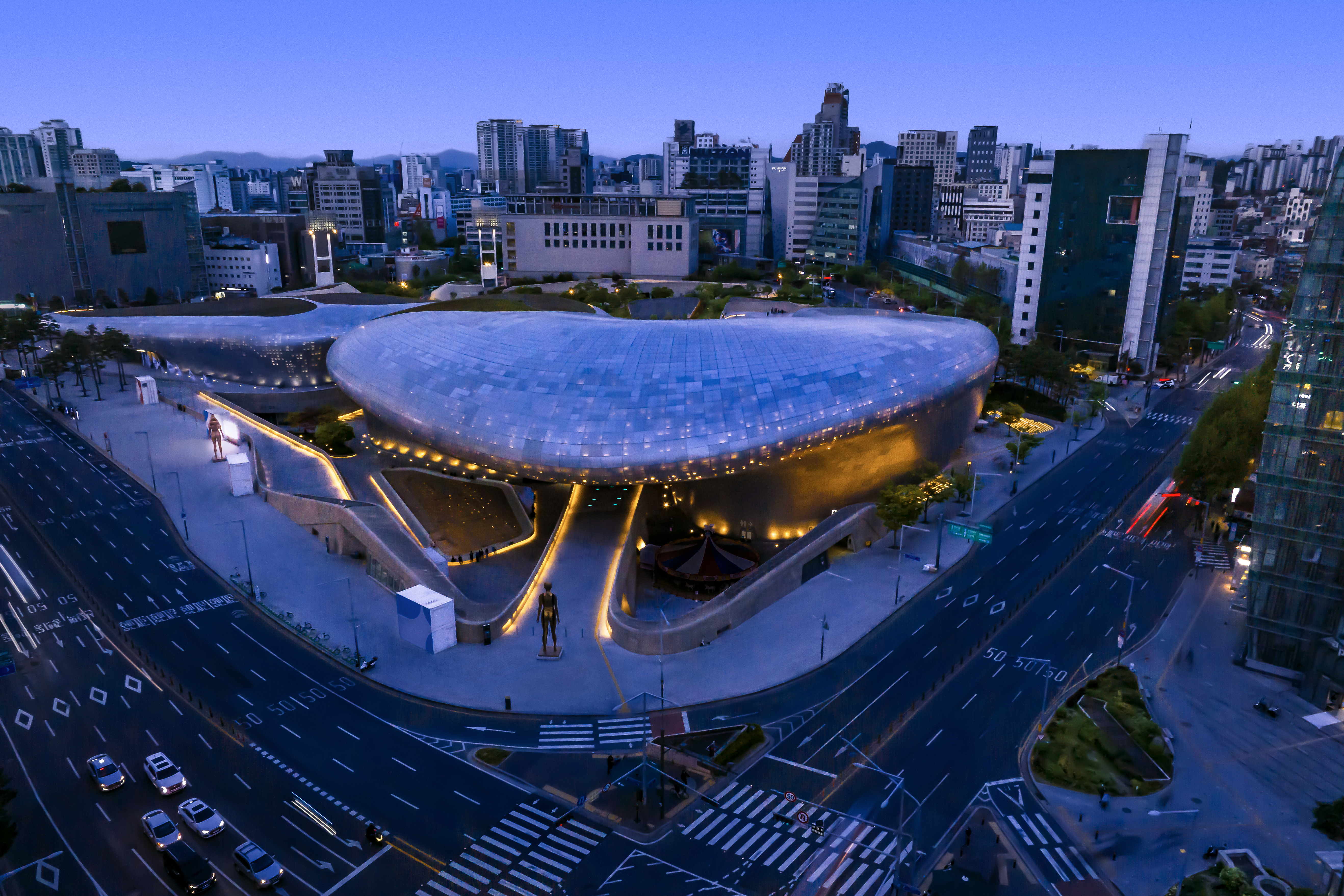 - 眼下に広がるおしゃれな東大門とにぎやかな大通りの眺めを楽しみながら、ミュージアムのガイドと一緒に起伏のあるDDPの屋上を冒険する体験