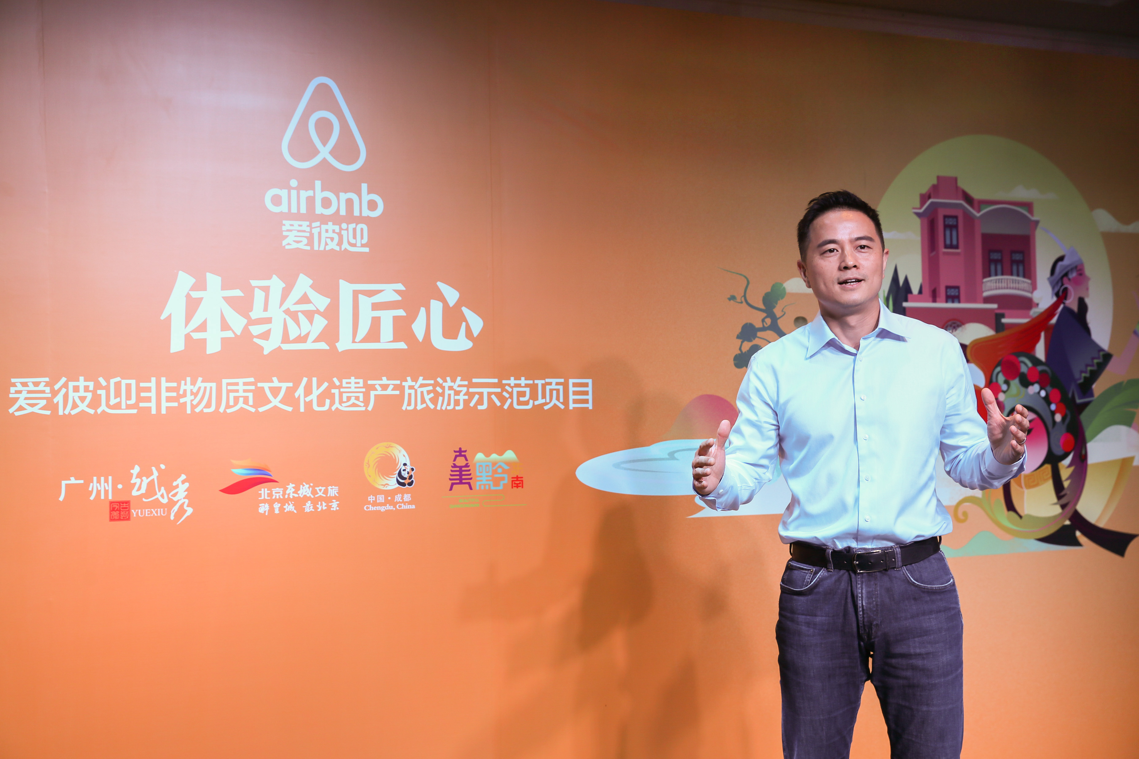 广州,2019年6月6日 —— 今天,Airbnb爱彼迎“体验匠心”非物质文化遗产旅游示范项目在广州正式启动。爱彼迎正式宣布与广州市越秀区、北京市东城区、成都市、贵州省黔东南州四个城市和地区建立战略合作伙伴关系,通过与重要文化旅游目的地的政府携手合作,爱彼迎将对非物质文化遗产进行旅游体验化融合,保护和传扬中国传统文化,提升旅游产品文化品位。在启动仪式上,广州市越秀区人民政府副区长陈伶俐、贵州省黔东南州副州长叶兴斌、成都市文化广电旅游局副局长王敏、北京东城区文化和旅游局副局长魏瑞峰、广州市文化广电旅游局非遗处处长严明以及爱彼迎中国总裁彭韬等嘉宾出席活动并发表讲话。