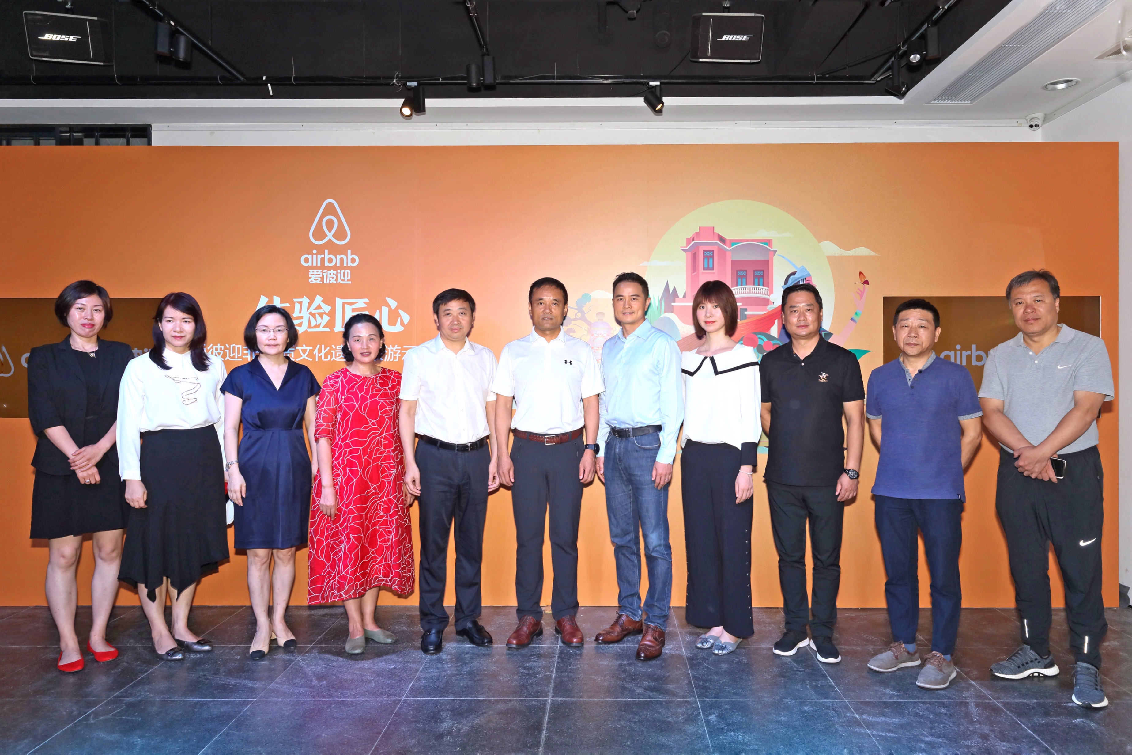 Airbnb爱彼迎中国总裁彭韬和嘉宾在启动仪式上合影